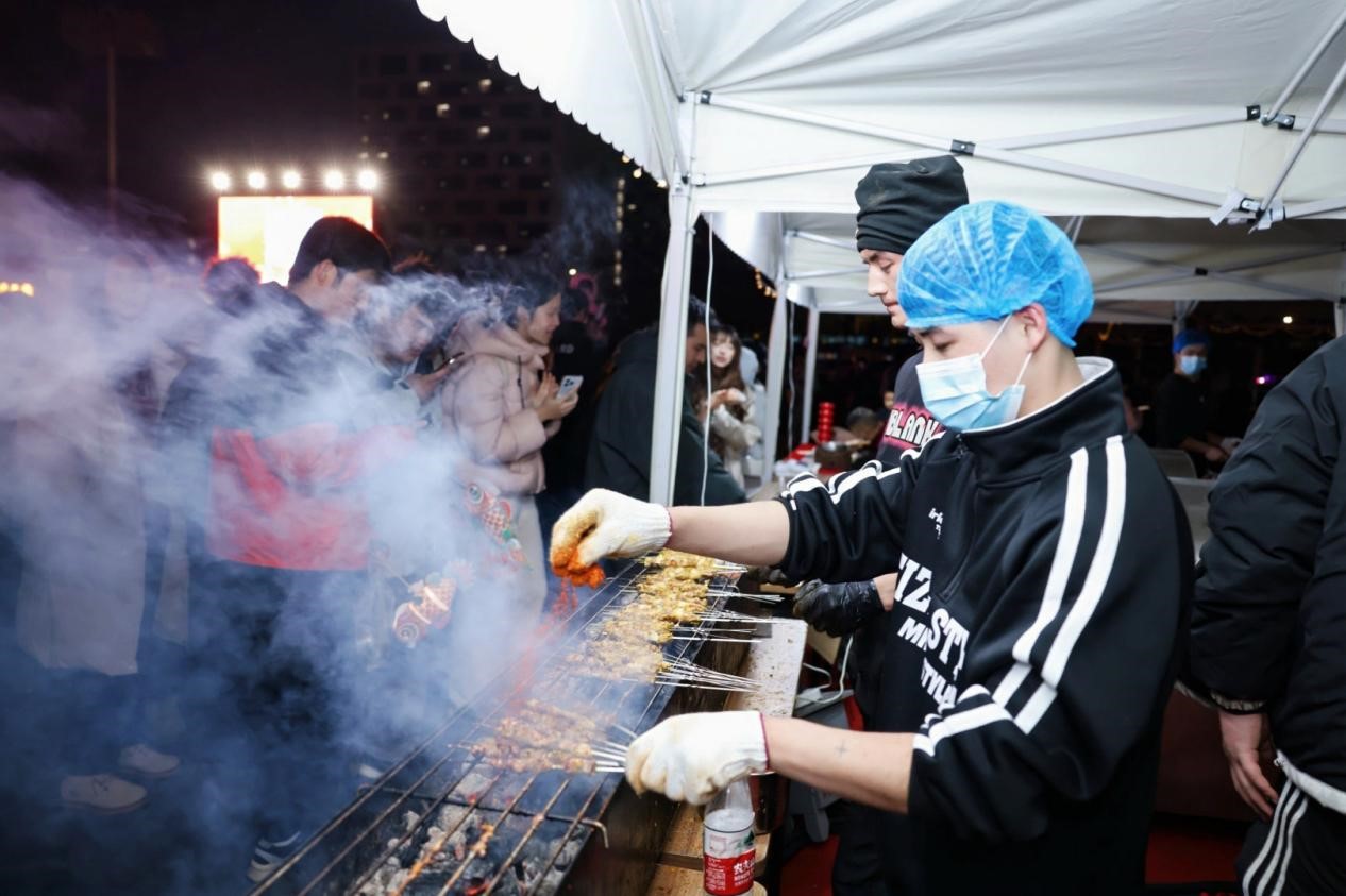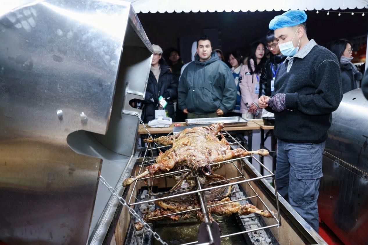 后勤服务中心特别推出的“浙财家味”非遗特色美食深受师生喜爱。地域美食区香气氤氲,临榆炸鸡、新疆羊肉串等100来个全国特色美食构成舌尖上的“浙财地图”。在众多美食中,烤全羊成了当晚的“顶流”。后勤服务中心与市场监管局全程护航,从食材安全到烹饪过程严格把关,“浙财家味”让每一位师生吃得放心、吃得安心,在烟火气中感受学校的温暖关怀。