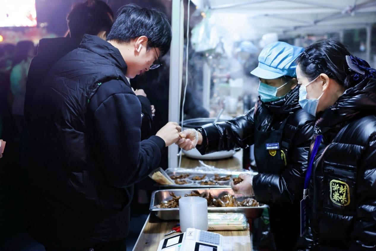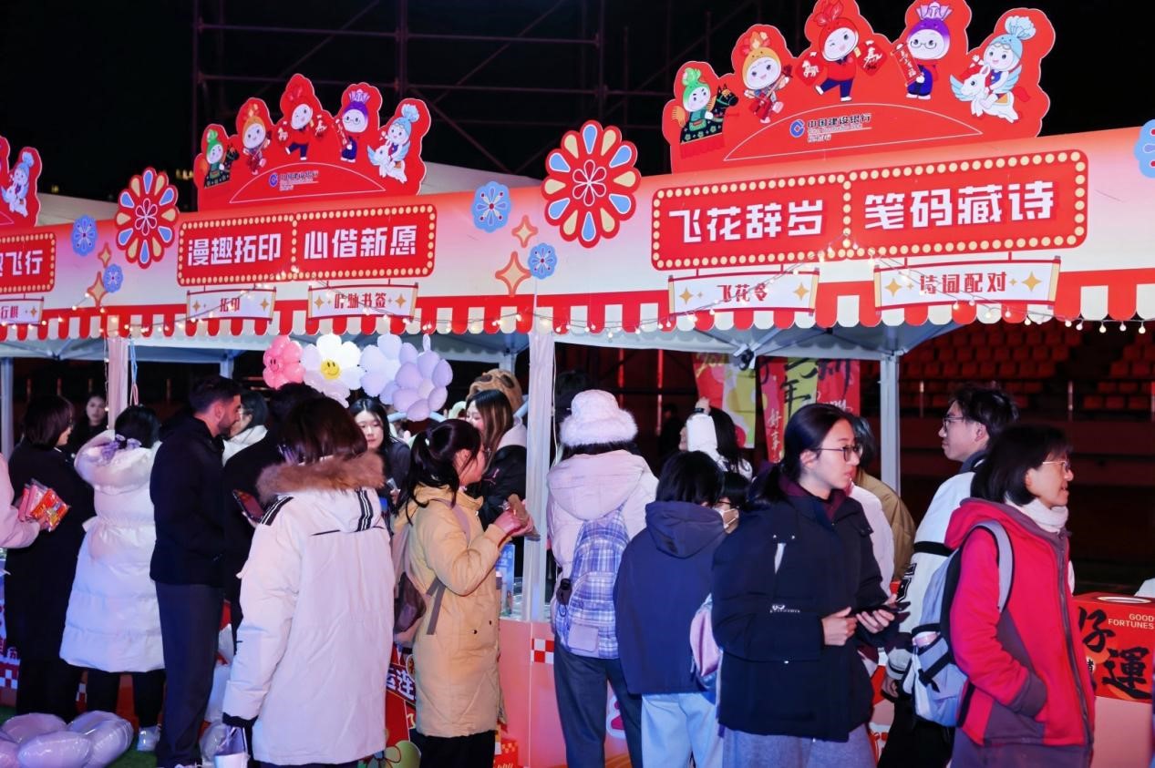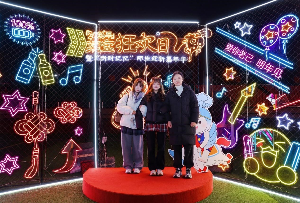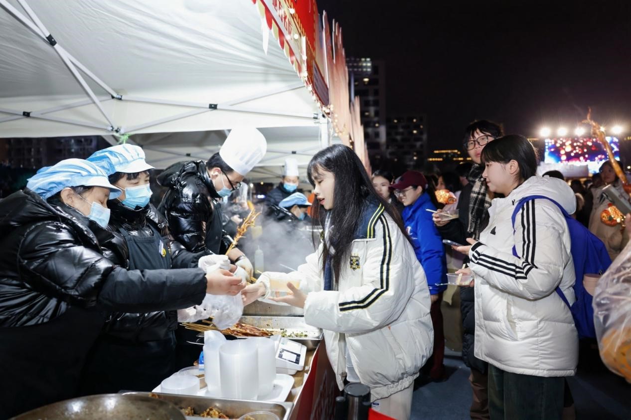 本次“菜宝日”狂欢节暨“浙财记忆”师生迎新嘉年华活动历时2个多月的筹备,由校团委、校工会、后勤服务中心、校友办等部门联合主办,由跨年倒计时晚会、非遗文化体验、社团风采展示、迎新许愿打卡、地域特色美食等五大板块组成,织就一幅“传统与现代交融、温暖与活力并存”的跨年图景。天气虽冷挡不住师生们如火的热情,活动现场近万名师生体验着各具特色的浙财文化,此刻的校园新年主题灯光秀与艺术装置,中式面具、霓虹灯墙、“浙财”打卡墙……古风、现代、祈福……一应俱全,处处洋溢着新年的喜庆氛围,承载着对未来美好的希望。