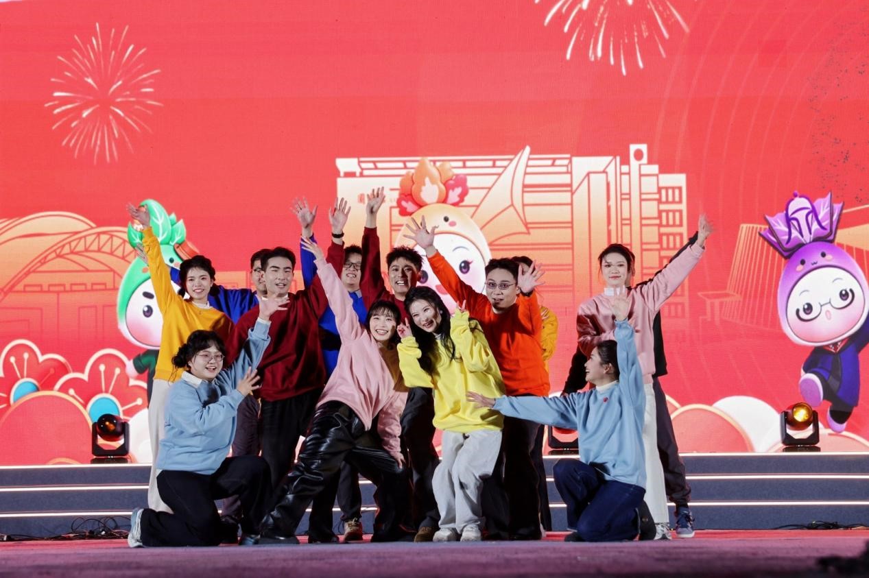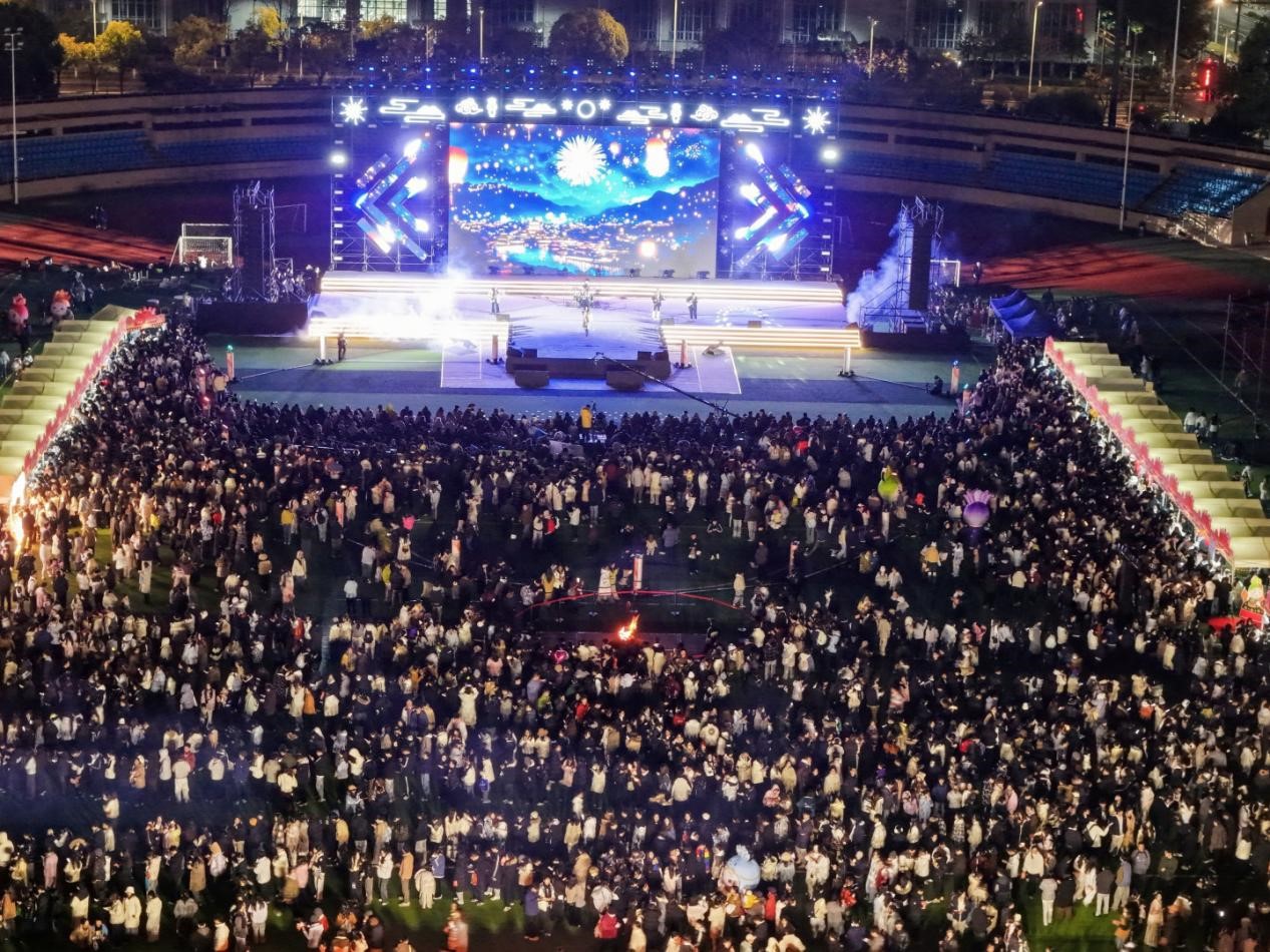 本网讯 岁序更替,华章日新,万人同迎“菜宝”日。12月31日“菜宝日”晚,学校西体育场灯火璀璨、人声鼎沸,师生脸上都洋溢着喜悦的笑容。浙江财经大学2026年“菜宝日”狂欢节暨“浙财记忆”师生迎新嘉年华活动在此盛大举行。校领导班子成员魏江、郑亚莉、徐晓东、董进才、何贤杰、申屠莉,党校办、宣传部、统战部、学工部、安全保卫部、工会、团委、离退休处、研工部、社会合作处、国际处、校友办、后勤服务中心、体育部负责人,各学院党委书记、分管学生工作副书记、团委书记及一万五千余名师生校友齐聚一堂,共赴一场跨越零点的新年之约,在温暖与欢喜中解锁专属浙财的跨年记忆。