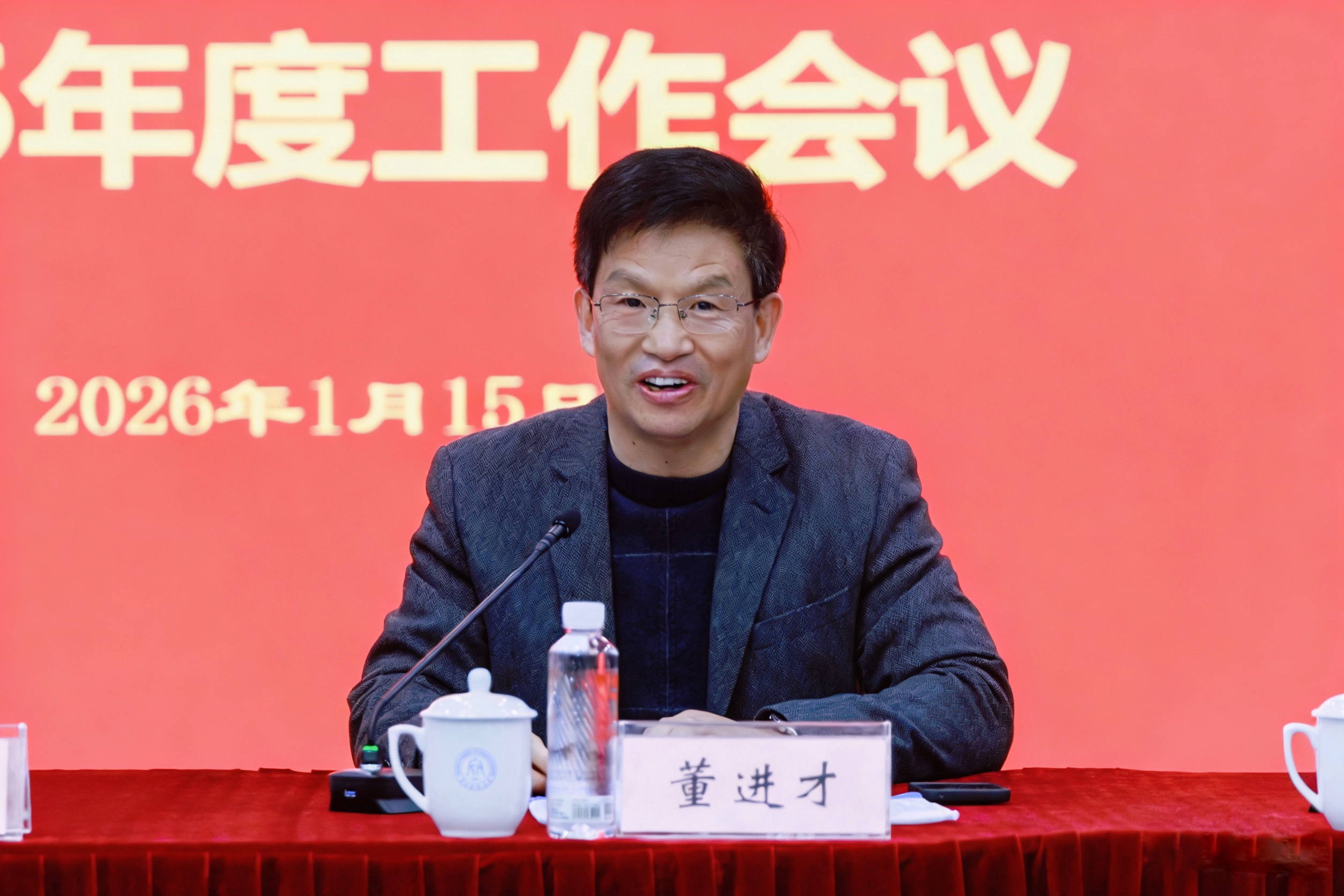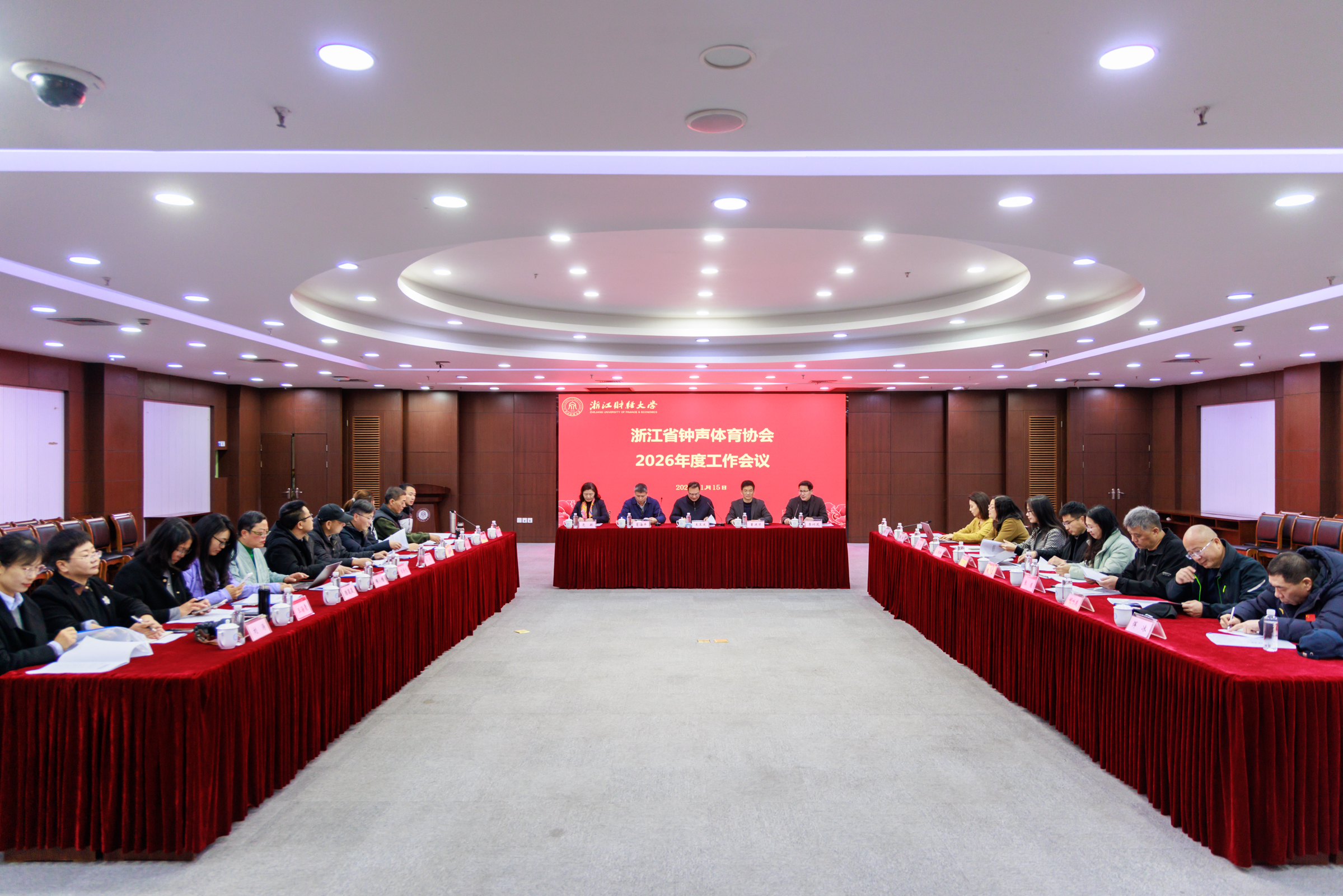 本网讯 1月15日,浙江省钟声体育协会2026年度工作会议在学校下沙校区召开。省教育工会主席、省钟声体育协会主席王玉庆,校党委委员、副校长董进才出席会议,省钟声体协副主席、秘书长、副秘书长及各专业分协会负责人参加会议。会议由省钟声体协副主席李训茂主持。