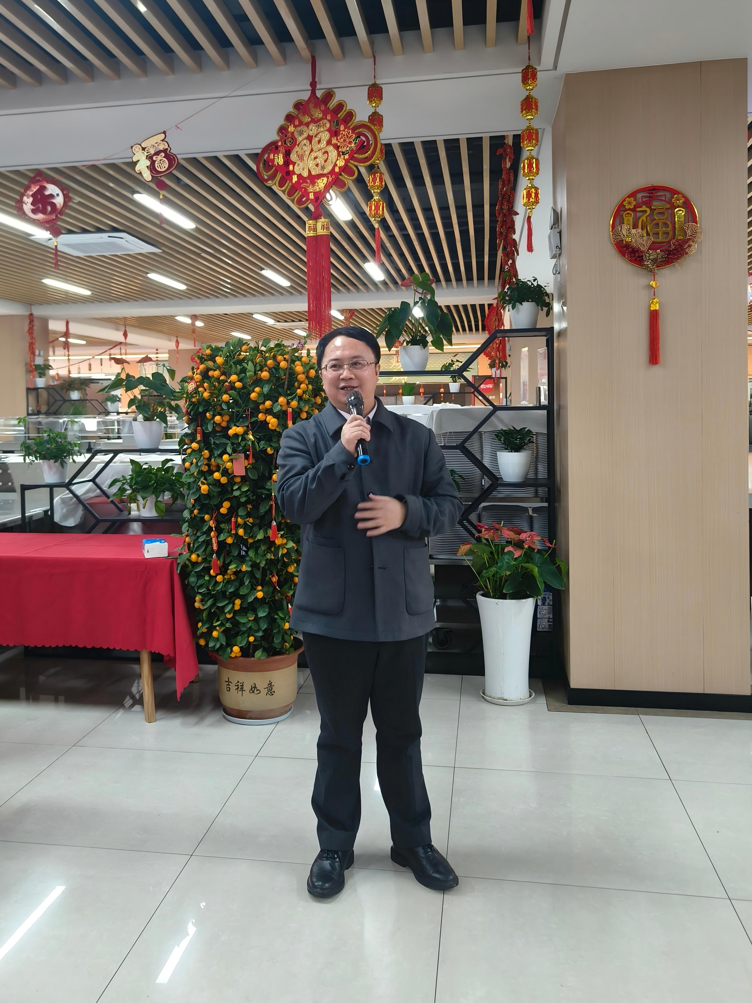 本网讯金蛇摆尾辞旧岁,骏马奔腾迎新春。2月15日,在农历丙午新年即将到来之际,校党委副书记、校长陈衍泰,校党委副书记程爽深入一线,走访慰问春节期间坚守工作岗位的教职工和留校学生,与大家欢聚一堂、共话家常、共进团圆饭,为大家送去新春的问候和祝福。“在中国传统文化中,马象征着速度和力量,也寓意着蓬勃向上的精神。在此,给大家拜年了,也通过你们转达我们对你们家人的良好祝愿,祝各位马年吉祥、马到成功!”在学术餐厅,陈衍泰代表学校向春节期间留校的同学和教职工们表示慰问并拜年。他表示,在过去的2025年,学校