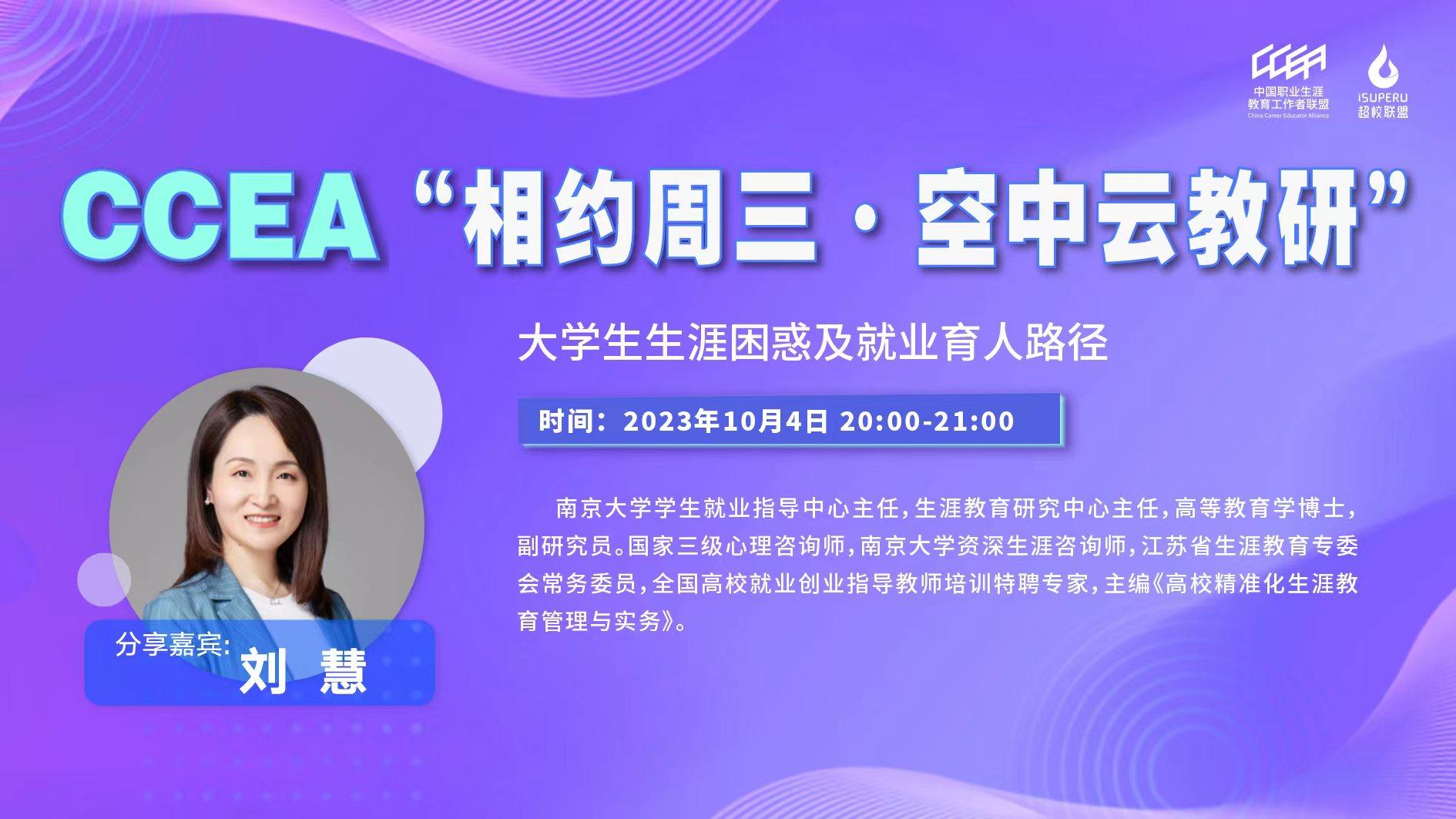 CCEA“相约周三·空中云教研”第15期:大学生生涯困惑及就业育人路径