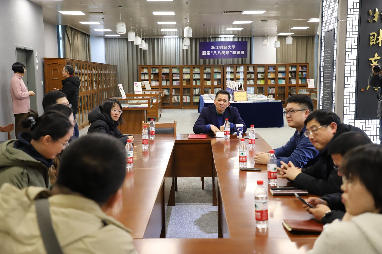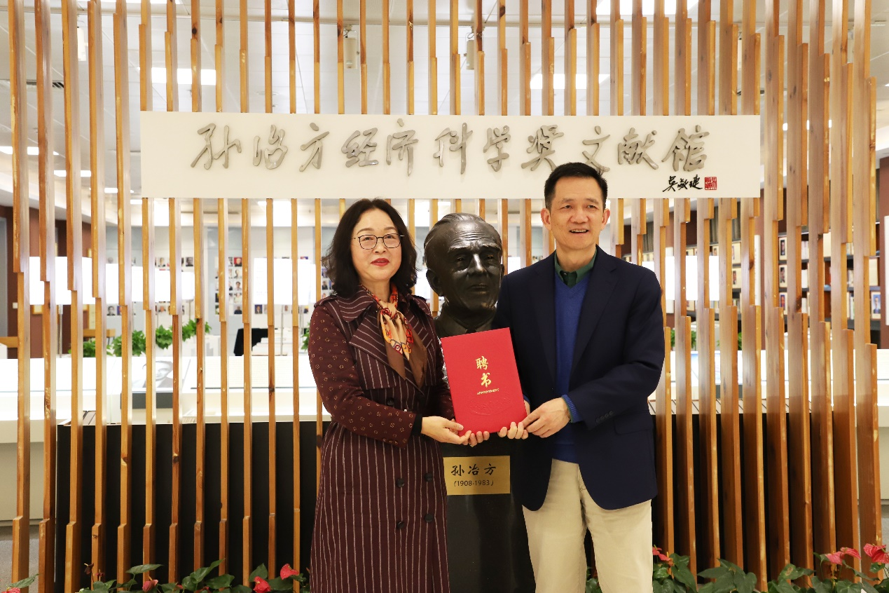 报告会后,姚洋教授参观了学校孙治方经济科学奖文献馆、诺贝尔经济学奖文献馆和浙财文库,对于文献馆建设渊源、资源收藏和学术活动开展情况表示充分肯定。此外,姚洋教授向孙冶方经济科学奖文献馆捐赠其签名著作并接受“孙冶方经济科学奖与中国经济发展”通识课课程顾问聘书,与在场老师们展开深入交流。