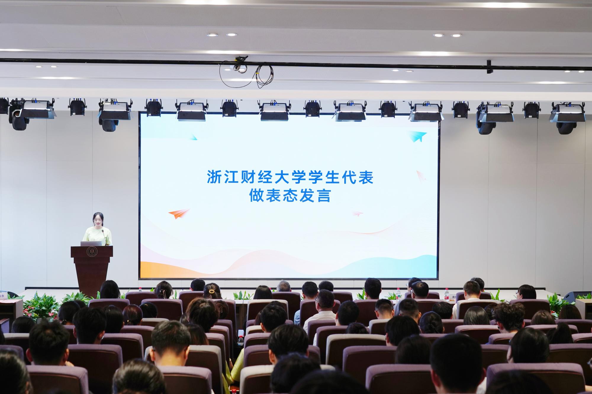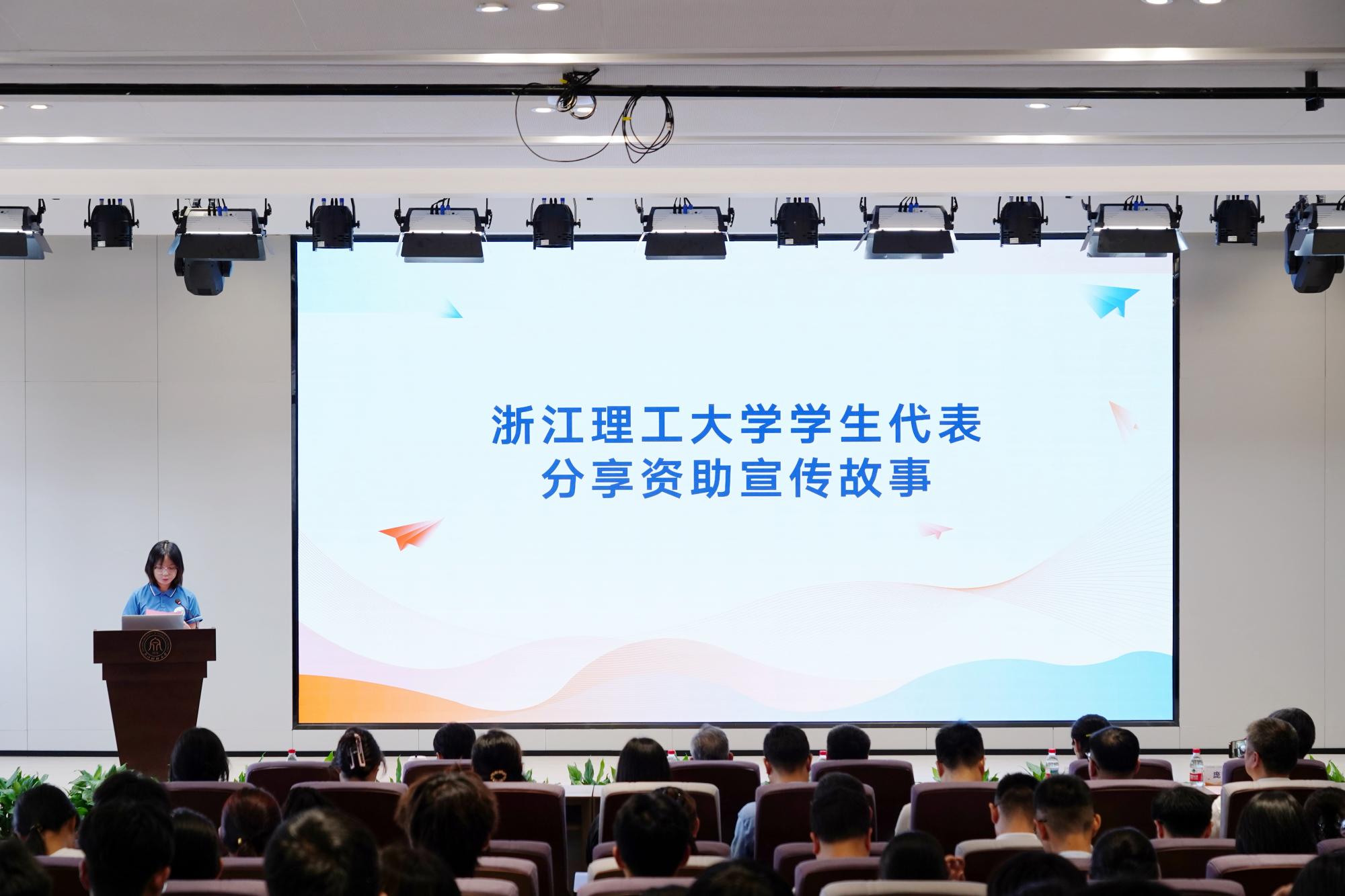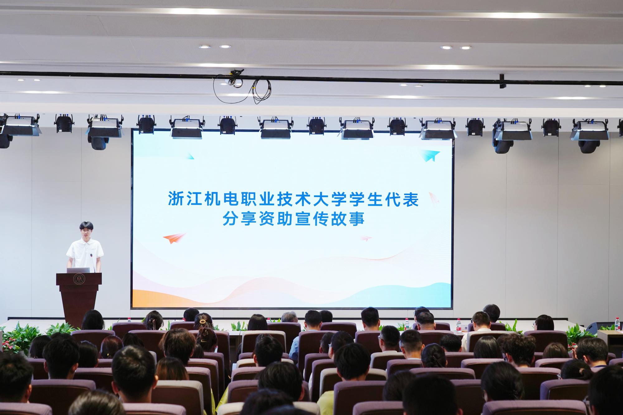 来自浙江理工大学、浙江机电职业技术大学的学生代表分享自身受助经历,以及对资助政策的深刻感悟。浙江财经大学学生代表做表态发言,立志以实际行动回馈社会,用脚步丈量土地,用声音传递温暖,让更多人了解资助政策的力量,帮助困难学子实现求学梦想。