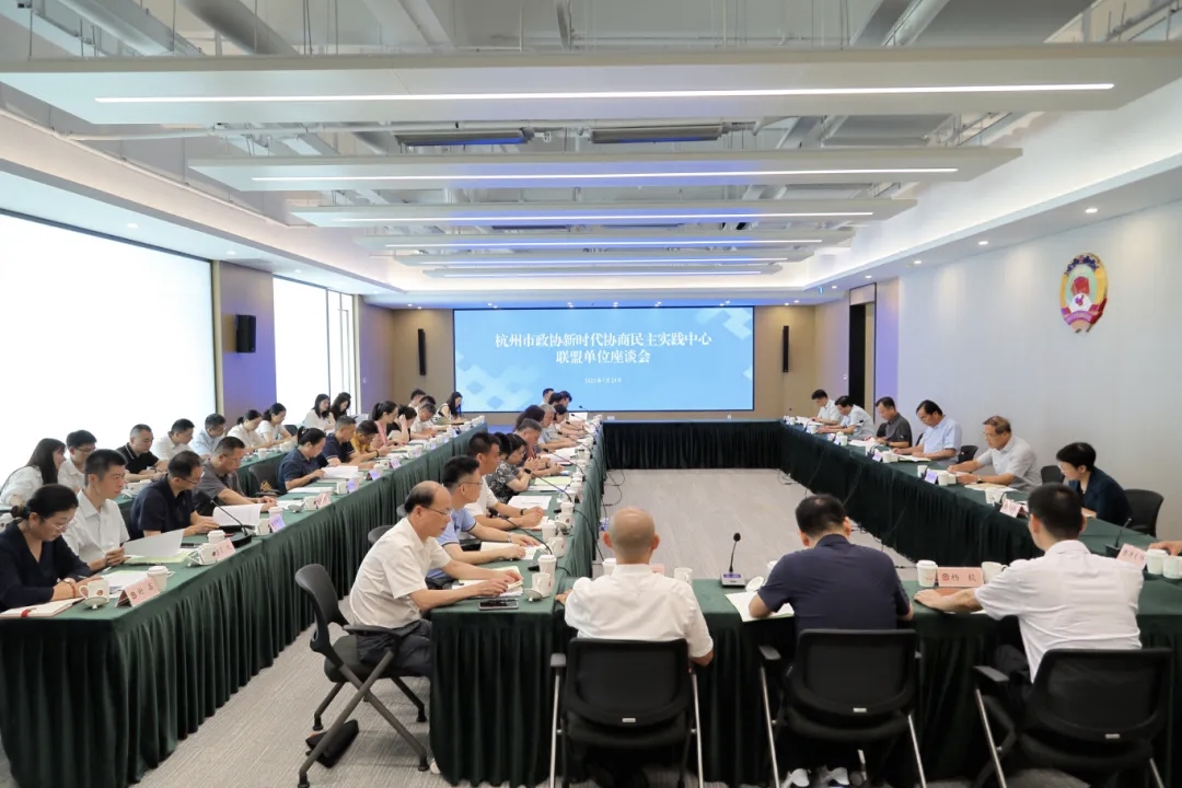 本网讯 7月24日,杭州市政协召开新时代协商民主实践中心联盟单位座谈会。市政协主席马卫光出席并讲话,市政协副主席毛溪浩主持,秘书长柴世民参加。副校长郑亚莉受邀参加并做发言。