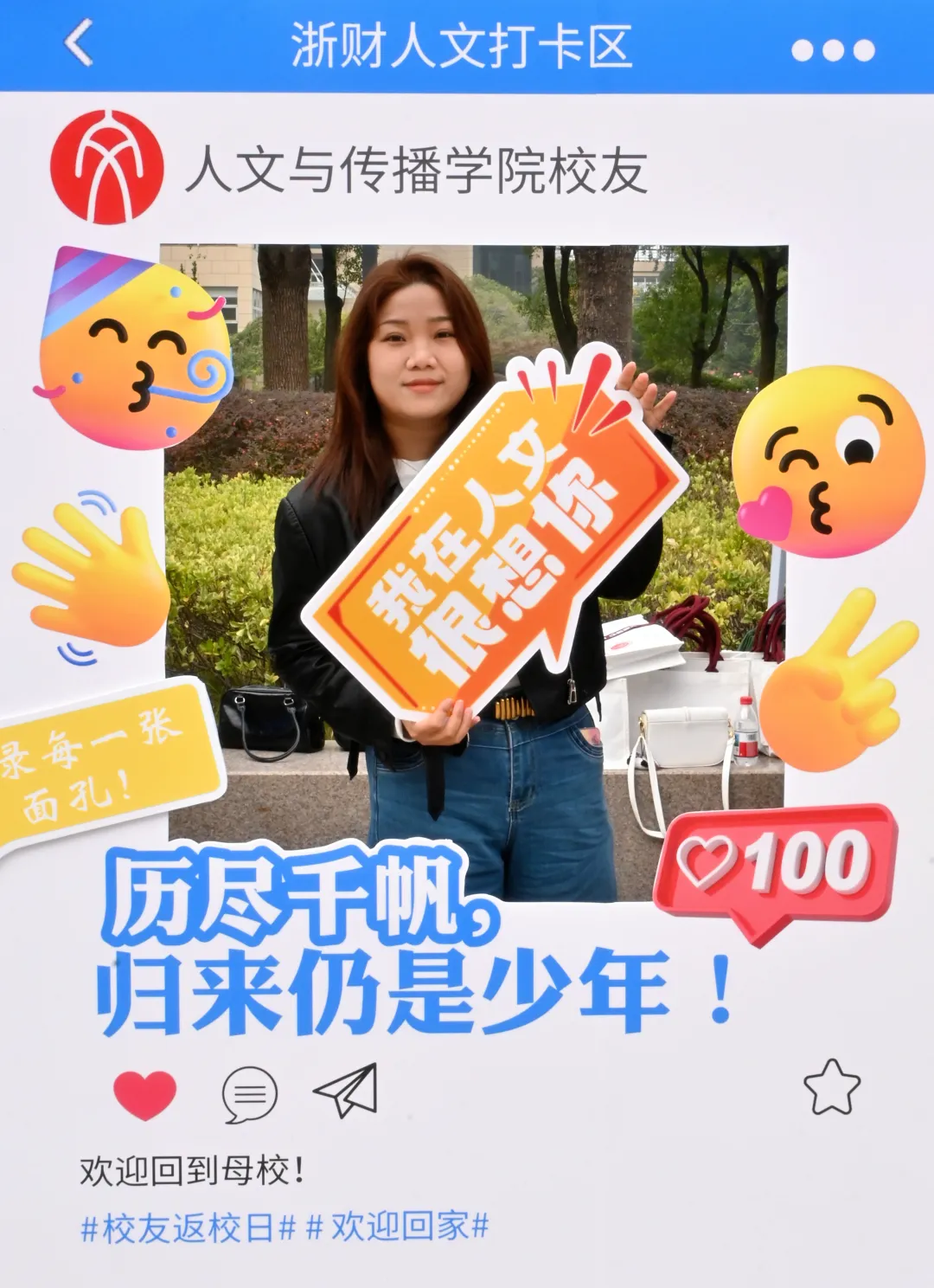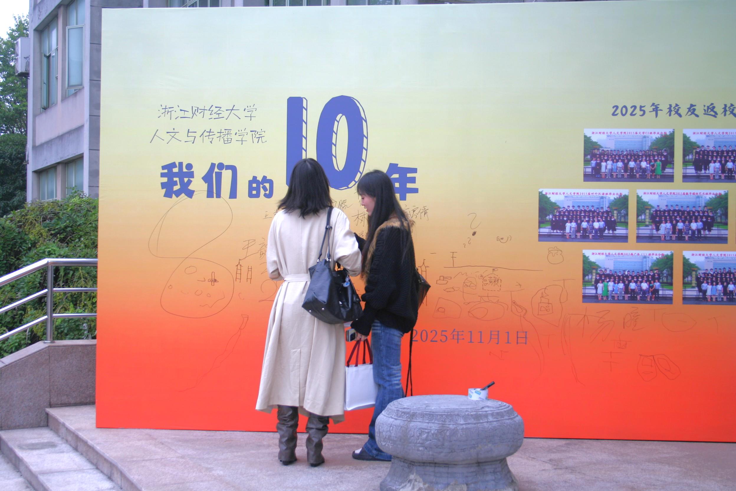 绵绵学子意,悠悠校友情。11月1日,人文与传播学院隆重举行校友返校日活动,来自全国各地的校友重聚在学涯湖畔,共忆青春岁月,共叙师生情谊。值此时节,学院特隆重举办师生交流见面会、优秀校友故事分享会、浙财人文爱心基金纪念品市集等活动,以此热烈欢迎校友返校。