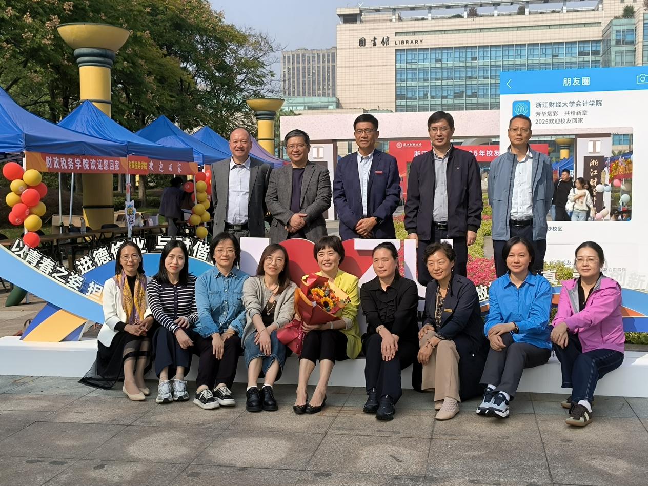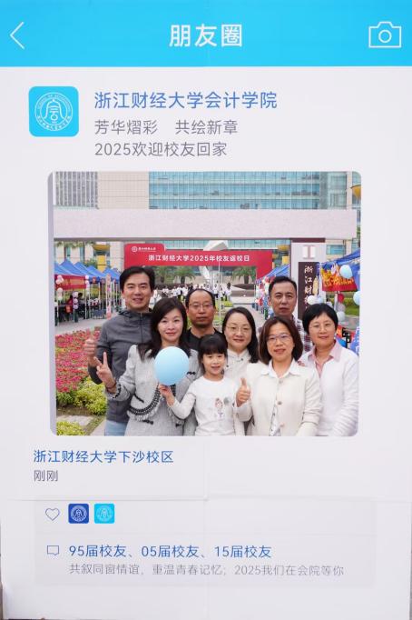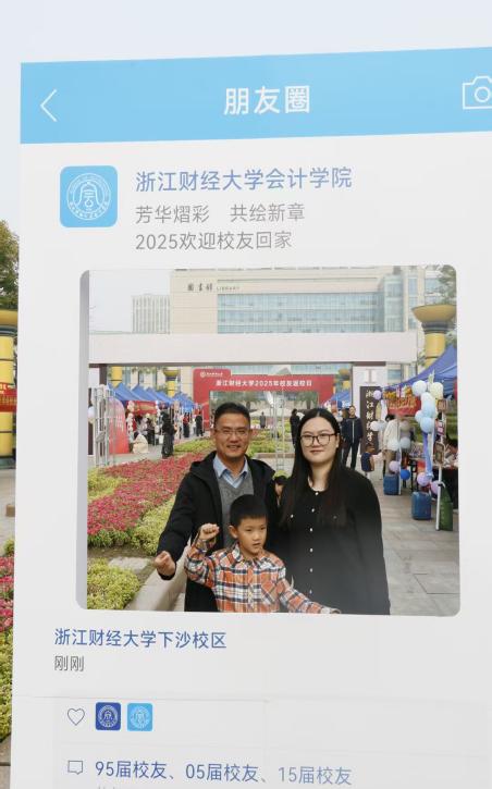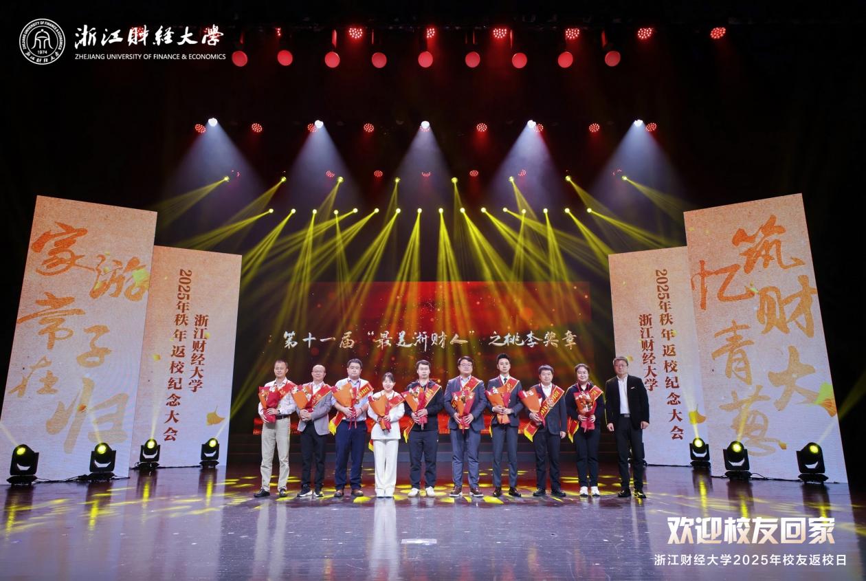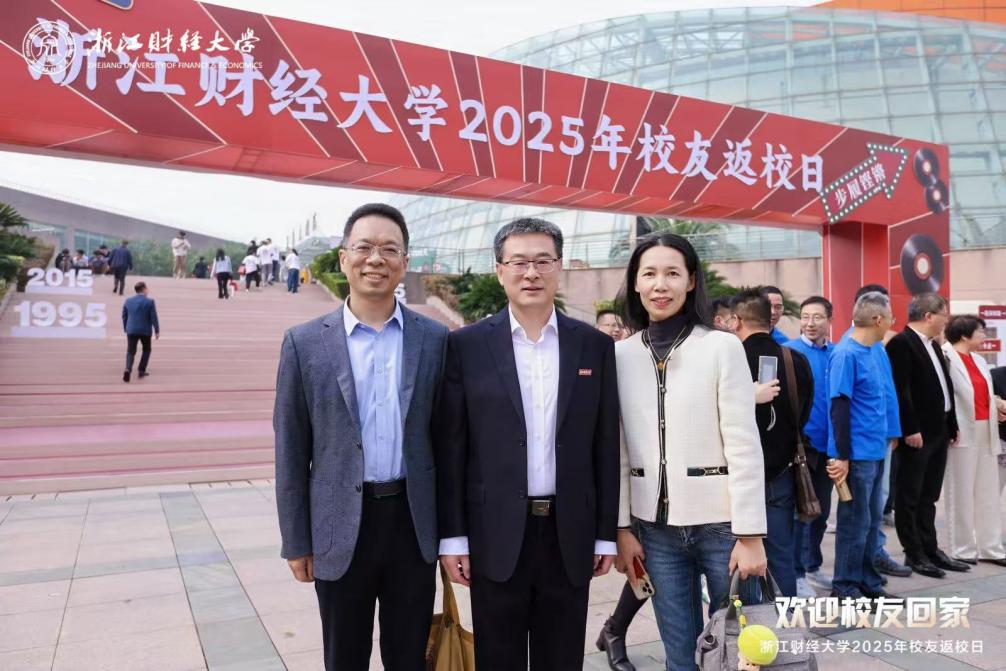 清晨的校园,欢迎横幅高悬。留影参观后,校友们移步普华大剧院,参加校友返校纪念大会。校党委书记、校长魏江为第十一届“最美浙财人之桃李奖章”获得者、2004届校友林茹颁奖。