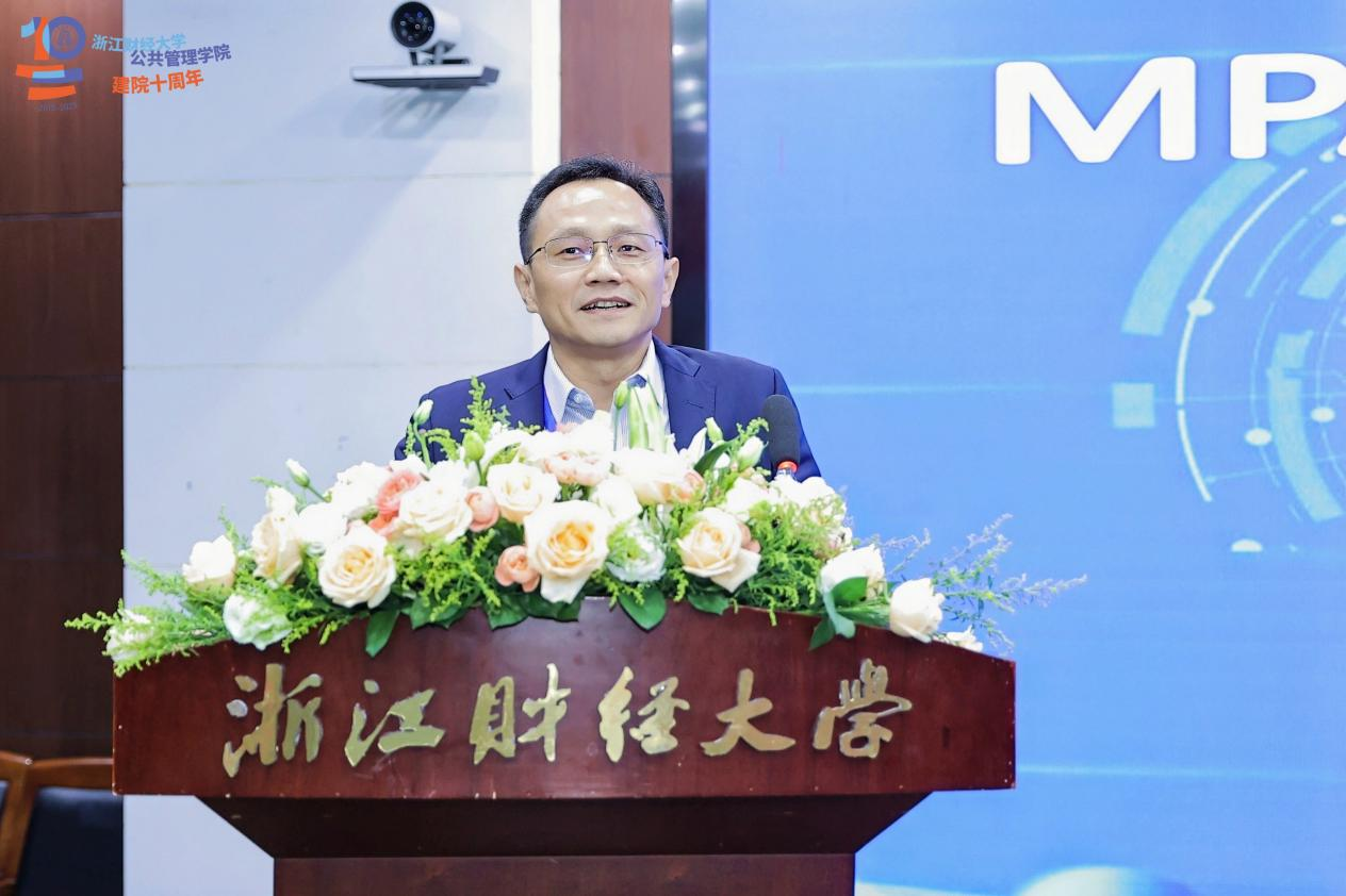 全国公共管理专业学位研究生(MPA)教育指导委员会副主任委员、中山大学政治与公共事务管理学院院长谭安奎教授在致辞中表示,浙财公管学院以“MPA学院”冠名,体现出对MPA事业战略意义的深刻把握。他强调,MPA不仅是学科发展的支撑,更是推动科学研究与治理实践深度融合、促进自主知识体系构建的重要平台。