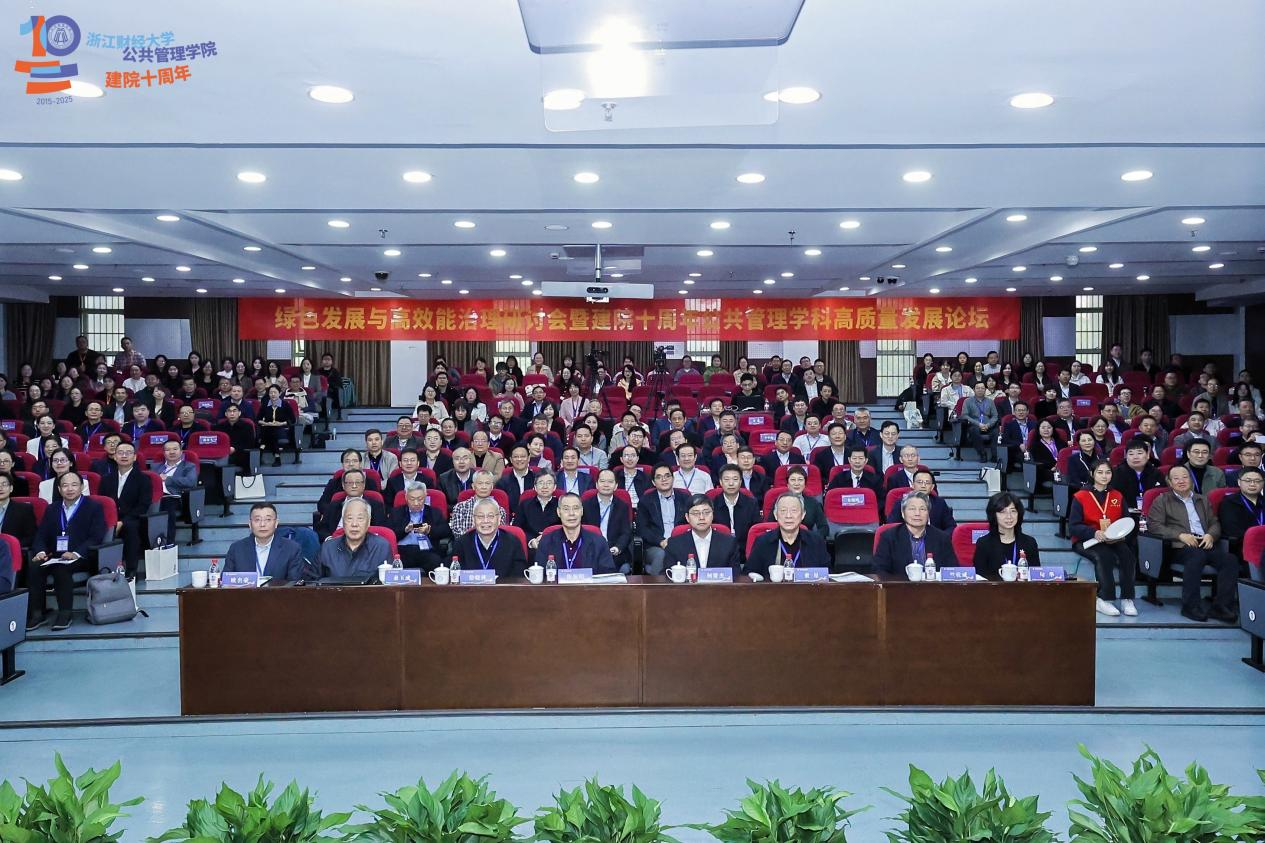 本次“绿色发展与高效能治理研讨会暨公共管理学科高质量发展论坛”不仅是一场高水平的学术交流盛宴,更是公共管理学院回顾发展历程、凝聚智慧力量、共谋未来发展的重要平台。新时代背景下,公共管理学院将始终秉持“精管为公、善治天下”的初心,以“制度治院”“人才兴院”“学科强院”“合作活院”为路径,在绿色化、智能化、国际化的新征程中,不断深化自主知识体系构建,推动学科交叉融合与人才培养创新,为推进中国式治理现代化贡献出浙财的智慧和公管的力量。