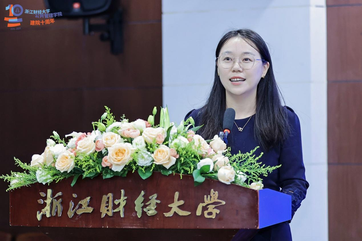我校城市管理系王笑言副教授作为教师代表发言。她表示,作为建院之初加入的“青椒”,见证了学院从初创到形成完整学科体系的发展之路,十年是里程碑更是新起点,新一代公管人将以谦逊之心学习、以合作之态交流、以务实之风奋进,共同推动学院迈向更加辉煌的未来。