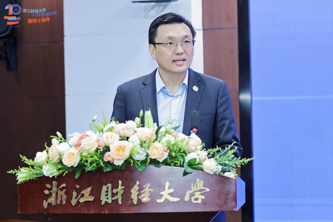 国务院学位委员会公共管理学科评议组成员、教育部公共管理类教学指导委员会副主任委员、南京农业大学公共管理学院欧名豪教授在致辞中对学院未来发展提出三点期望:强化“公管+财经”“公管×数智”的融合,培育新兴专业方向;深化教学改革,打造具有浙江辨识度的“金课”与教学团队;拓展实践育人,依托浙江“重要窗口”的区位优势,让学生在真实治理场景中淬炼能力。他表示,教指委将持续支持学院发展,期望公共管理学院以建院十周年为新的起点,加快建设成为国内有影响力的公共管理人才培养高地。