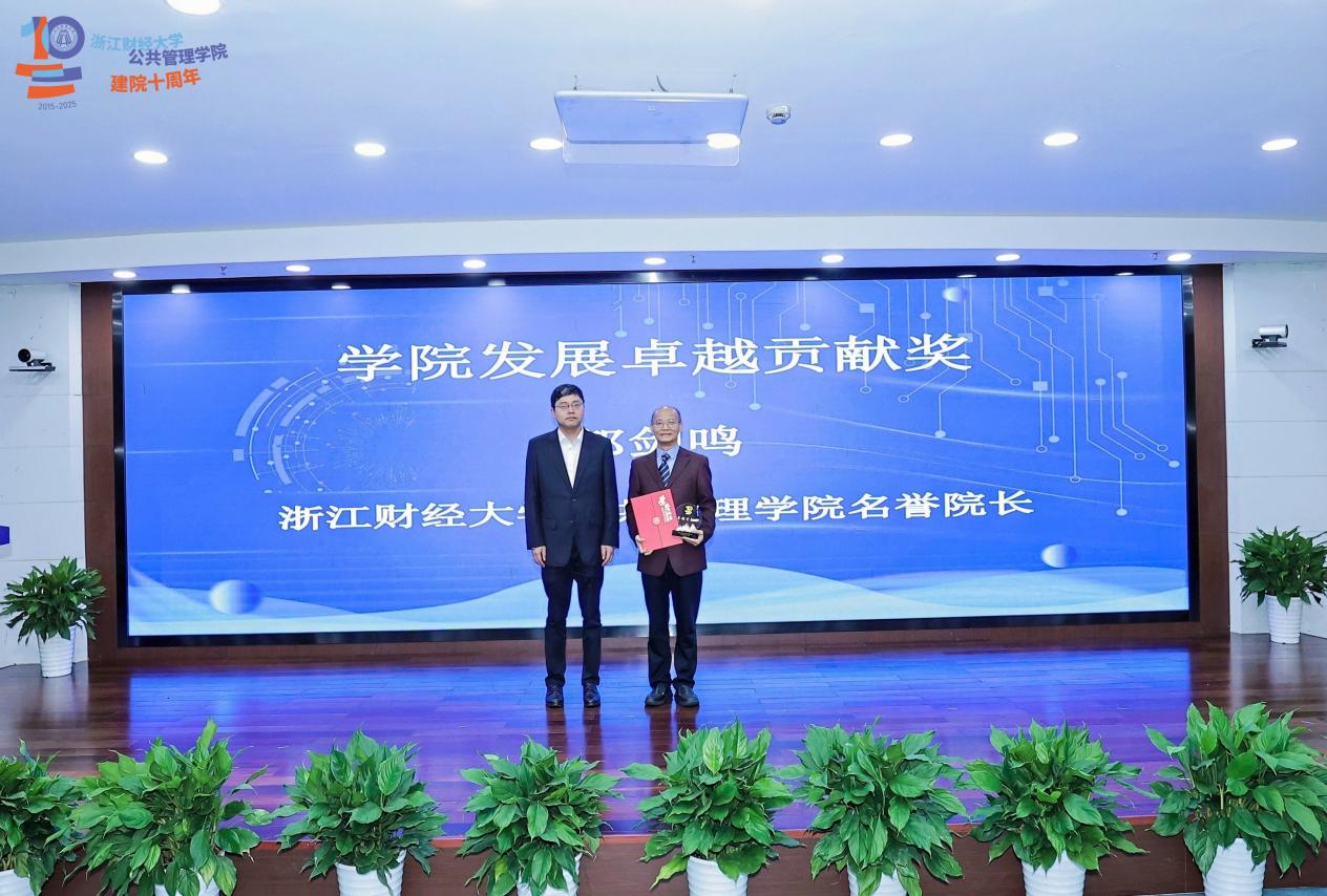 会上,何贤杰教授为14位“公共管理学院突出贡献奖”获得者颁奖,并授予名誉院长郭剑鸣“卓越贡献奖”,表彰郭剑鸣教授为学院发展做出的卓越贡献。