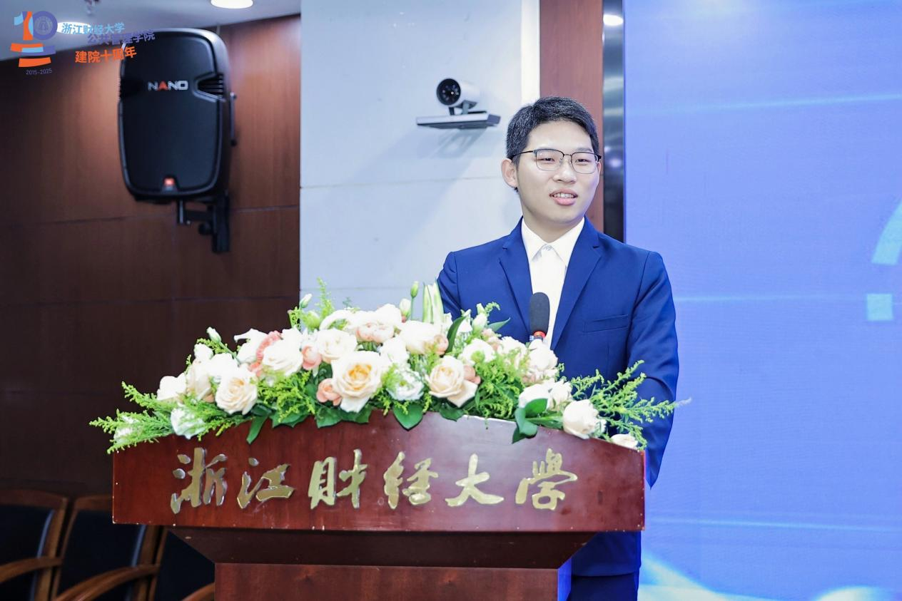 2025级公共管理博士研究生刘庄田同学作为在校生代表发言。他深情回顾了与学院共同成长的七年历程。站在十年新起点,他将秉持“公管人”的责任使命,以更饱满的热情投身学术研究与公共服务,以实际行动回应时代呼唤。