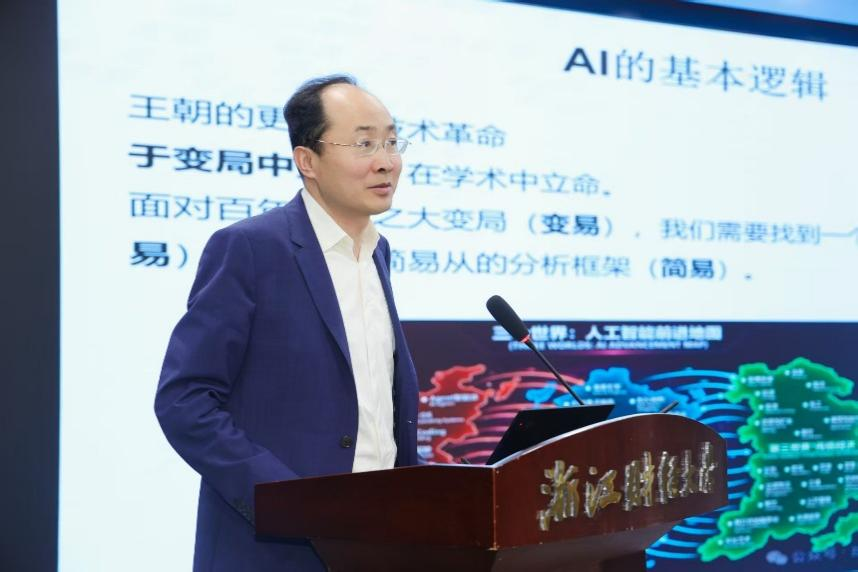 魏江教授作了题为“AI赋能新商科人才培养的国际态势和浙财实践”的主题报告。报告结合国际前沿趋势与学校改革探索,系统阐述了人工智能时代商科教育面临的机遇、挑战与路径选择。他回顾了AI赋能新商科人才培养的国际态势三种模式,指出AI不仅是一种工具,更是推动教育重构的力量。真正的变革不是简单“AI+商科”或“商科+AI”,而是从教育目标、课程体系、教学模式、教师角色到教育生态的全方位基因重组。他重点分享了学校在AI赋能人才培养方面的思考与实践,强调学校的育人使命是培养具有“知识、品德、能力、素质”的中流砥柱型人才,为学生20年后的发展赋能,为一辈子的幸福奠基。AI时代的管理教育,必须回归育人本质,重构组织形态,打破学院与专业壁垒,真正以学生成长为中心。浙江财经大学将继续积极探索,为中国新商科人才培养提供“浙财方案”。