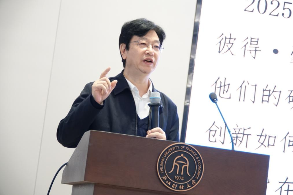 本网讯 近日,浙江大学国家高端智库领军人才、浙江省新质生产力发展研究会创会理事长房汉廷研究员应邀做客“菜园讲堂”,为学校师生们作题为“创新驱动型经济增长的条件及边界——2025年诺贝尔经济学奖获奖作品解析”的学术讲座。本次讲座为图书馆第十届诺贝尔经济学奖学术月活动之一,吸引了200余名师生参加。