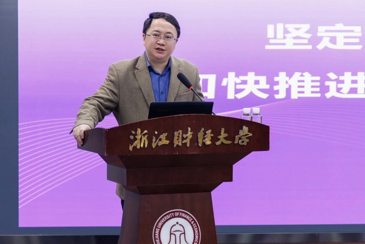 陈衍泰以《坚定信心 乘势而上 加快推进学校事业高质量发展》为题作工作部署。陈衍泰强调,2026年是“十五五”规划的开局之年,也是浙江高质量发展建设共同富裕示范区取得决定性进展的关键之年。面对国家战略、浙江部署、科技变革和区域需求的深刻变化,浙财大必须主动识变、应变、求变,要提站位、观全局、谋大势,打破路径依赖、推进系统重塑,坚定走好“新财经战略”之路,用心回答“强国建设,浙财何为”的时代命题。
