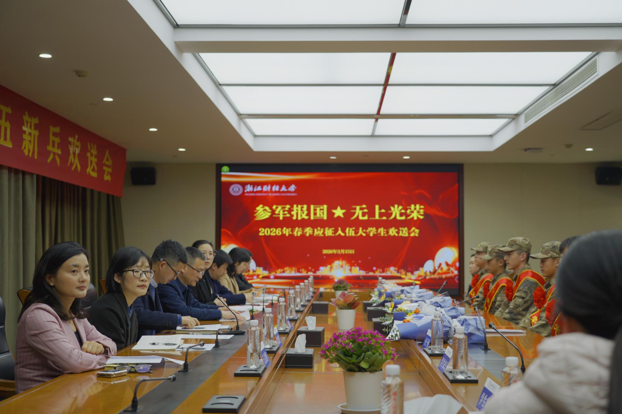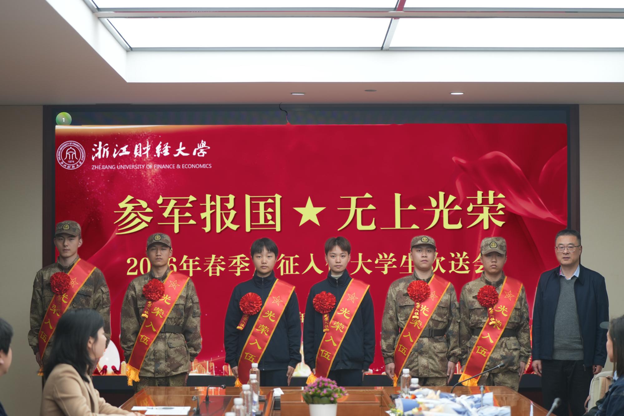 会上,党委人武部负责人介绍了2026年春季征兵工作情况,宣读了《浙江财经大学2026年春季应征入伍学生名单》。经过严格选拔,截至目前,我校已有9名学生即日起将奔赴部队,开启军旅新征程。